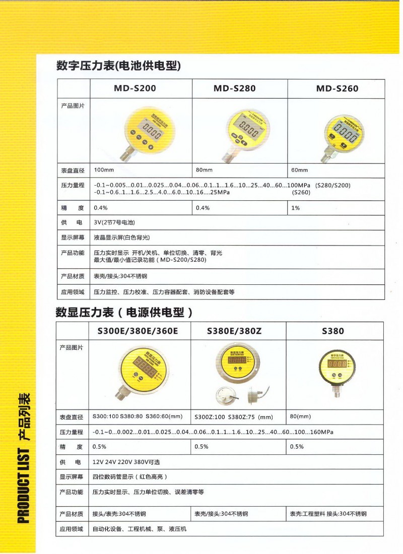 数显压力表又称数字压力表,内置压力传感器,是集压力测量、显示一体的压力表,具有抗震动、显示精度高、稳定性高、可清零、自动待机等特点。该系列数字压力表采用电池供电,由于采用了低功耗的处理器芯片,续航时间长,具有自动待机与一键清零功能,使用方便,可替代机械。