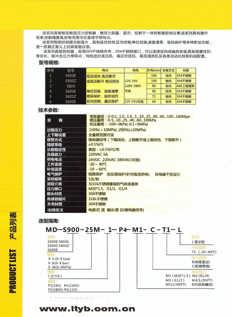 MD-S900Z 联泰仪表MD-S900Z数显电接点压力表开关]信息由会员[