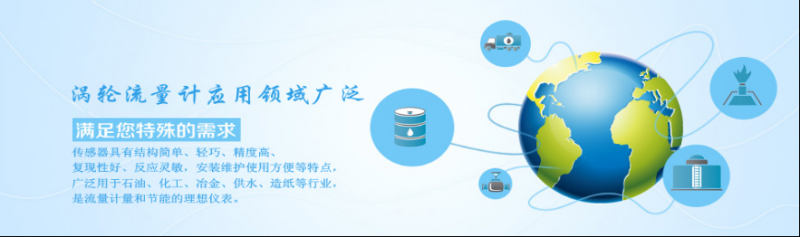 涡轮流量计由于叶轮的叶片与流向有一定的角度,流体的冲力使叶片具有转动力矩,克服摩擦力矩和流体阻力之后叶片旋转,在力矩平衡后转速稳定,在一定的条件下,转速与流速成正比,由于叶片有导磁性,它处于信号检测器(由磁钢和线圈组成)的磁场中,旋转的叶片切割磁力线,周期性的改变着线圈的磁通量,从而使线圈两端感应出电脉冲信号,此信号经过放大器的放大整形,形成有一定幅度的连续的矩形脉冲波,可远传至显示仪表,显示出流体的瞬时流量和累计量。在一定的流量范围内,脉冲频率f与流经传感器的流体的瞬时流量Q成正比。吸取了外流量仪表的技术,经过不断优化设计,具有结构简单、轻巧、度高、重复性好、反应灵敏、安装维护简便等特点的新一代涡轮流量计,广泛应用于石油、化工、食品、国防、计量等领域。