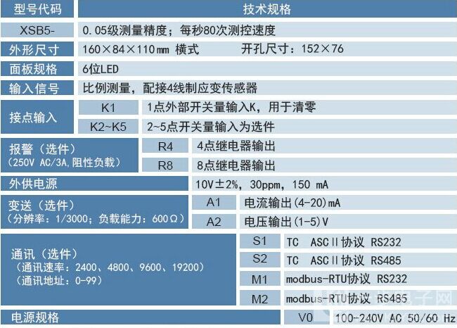 XSB5-R4S2V0称重控制表XSB5-R4-A1适用于拉力、压力、冲击力、张力及重量的测量控制,有数个各有特点的系列产品,能满足各类应用需求。