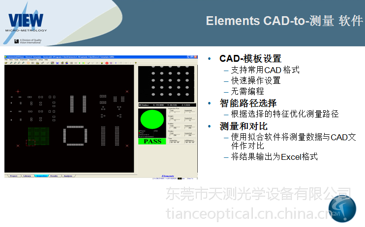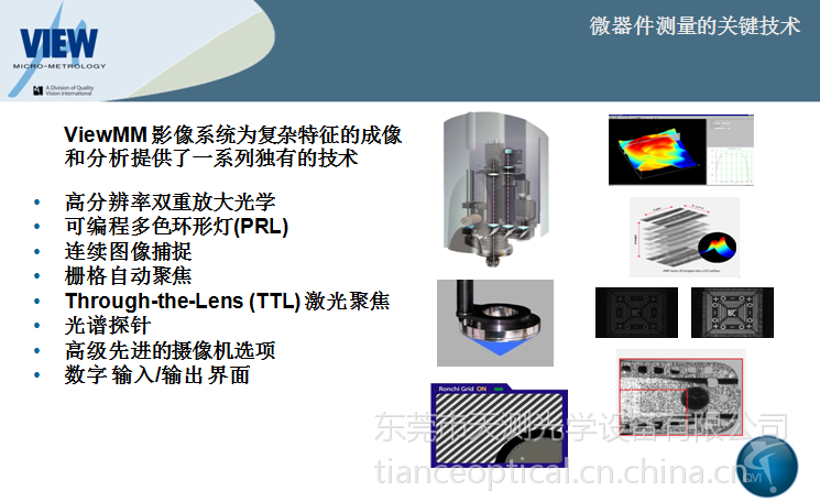 公司专业从事美国QVI产品、OGP影像测量仪,VIEW影像测量仪(中国区总代)、法国Keron 关节臂三坐标测量仪、等著名品牌测量仪器的销售、安装、维修、校正、保养、升级等服务。公司拥有完善的样品测试中心和方案评估实验室,可为客户提供完善的测量解决方案,公司附设200平米的机器展示中心,可为企业,学校及研究机构提供三维尺寸测量,三维激光扫描,测量仪应用培训等服务。