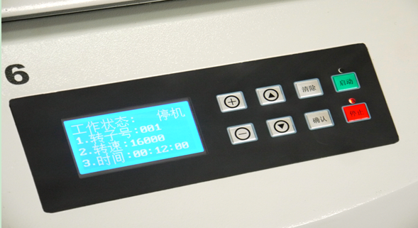 5.【启动键】和【停止键】:系统一切正常时,按下启动键可以启动离心机。当离心机在运行时,按下停止键,则离心机停机。当离心机处于停机状态时,再按停止键打开门锁。