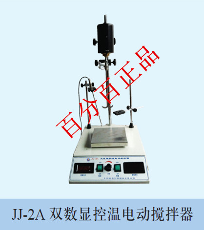 双数显控温电动搅拌器JJ-2A概述用途:双数显控温电动搅拌器选用永磁式直流电机,具有增力搅拌、转速稳、无噪音、连续可调。搅拌棒采用不锈钢制成,耐腐蚀。设有恒温加热装置,可根据工作要求选择温度。
