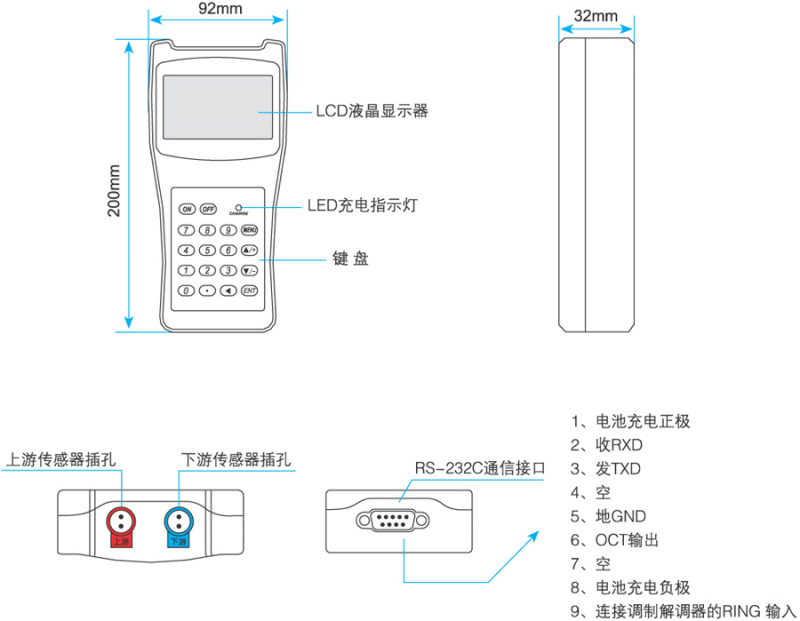 标准数据接口RS232用于联网检测或导出记录数据