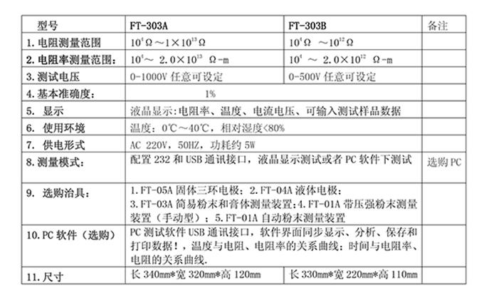FT-303系列表面和体积电阻率测试仪技术参数资料