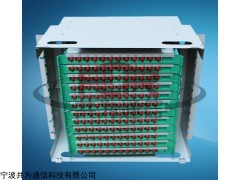 结构特点:用19″标准安装界面,适用于多种机架、机柜上的安装;采用金属结构,表面涂装静电喷塑,结构轻巧,外形美观;全模块化设计,全正面化操作,安装灵活、施工维护方便;抽拉式设计,集熔接配线一体化的熔接配线模块;适用于束状和带状光缆;每盘可卡式安装12个FC,SC及ST适配器,适配器正面呈30°角,既保证拉光纤的曲率半径,又可避免激光损伤眼睛;模块可取出至设备外操作,简单方便;光缆和尾纤均具有2m以上的盘储空间