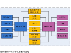 该嵌入式综合系统采用双CPU结构,ARM和DSP相结合进行嵌入式系统和数字信号处理的综合实验。ARM CPU可以选用S