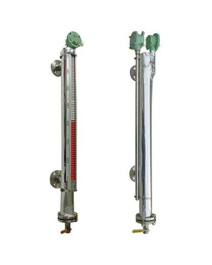 磁翻板液位计-上海自动化仪表厂是根据外同类产品加以消化提高且按照原化工部颁布的磁性液位计标准HG/T21584-95研制生产的产品。该仪表可用于各种塔、罐、槽、球型容器和锅炉等设备的介质液位检测。该系列的液位计可以做到高密封,防泄漏和适用于高温、高压和耐腐蚀的场合它弥补了玻璃板(管)液位计指示清晰度差、易破裂等缺陷,且全过程测量无盲区,显示清晰、测量范围大。磁翻板液位计的零部件材料采用1Cr18Ni9Ti、316L、0Cr18Ni9Ti、1Cr18Ni9Ti衬PTFE(聚四氟乙烯)、PVC、PP  等材料及进口元件,具有的可靠性和抗腐蚀性能。