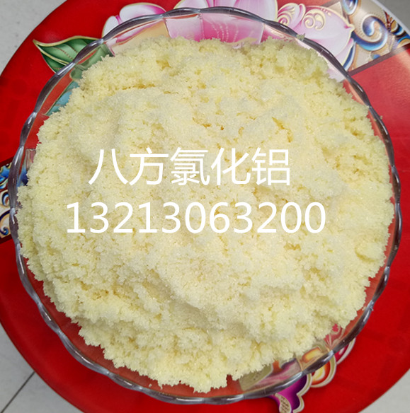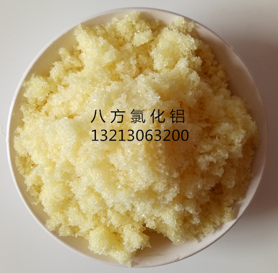 工业品呈淡黄色。易溶于水、醇、氯仿、四氯化碳,微溶于苯。熔化的氯化铝不易导电,和大多数含卤素离子的盐类(如氯化钠)不同。氯化铝的水溶液完全解离,是良好的导电体。