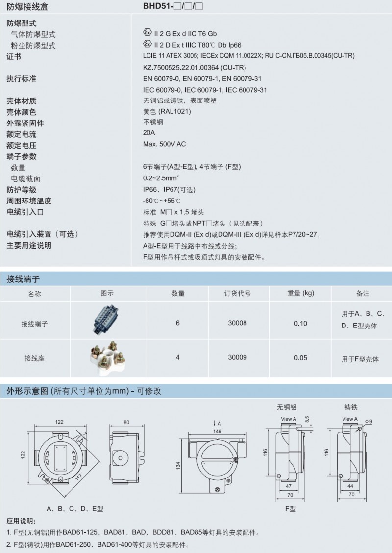 华荣ATEX防爆接线盒有IECEX认证 CU-TR防爆认证