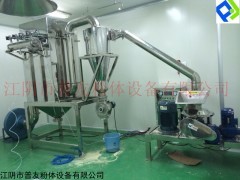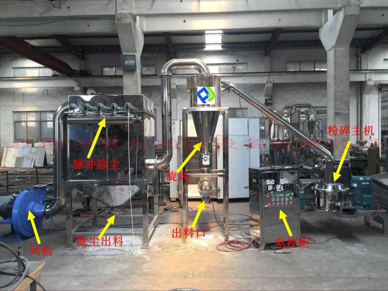 物料由料门经螺旋输送器进入粉碎室,被高速旋转的刀片 剪、切粉碎,通过负压风运的方法把物料运入旋风分离 器.排出物料粉尘由吸尘箱经布袋或滤筒过滤回收,生产过程中无粉尘飞扬,且能提高物料的利用率,降低企业成本。