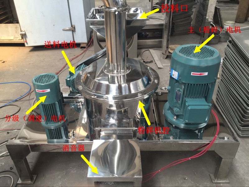 中药片剂类超微粉碎机Ultra fine crusher由主机、辅机、电控箱三个部分组成,设计紧凑,结构,合理,具有风选式、无筛无网。机内装有分级机构,能使粉碎,分级一次完成。负压输送使粉碎作业时机腔内产生的热量源源不;断地排出.故也适应于热敏性物料的粉碎。本机适用范围广,生产过程连续进行,出料粒度可调;能处理如:化学制品、食品、药品、化妆品、染料、树脂、壳物等多种物料的粉碎及分级.该机已达到水平。