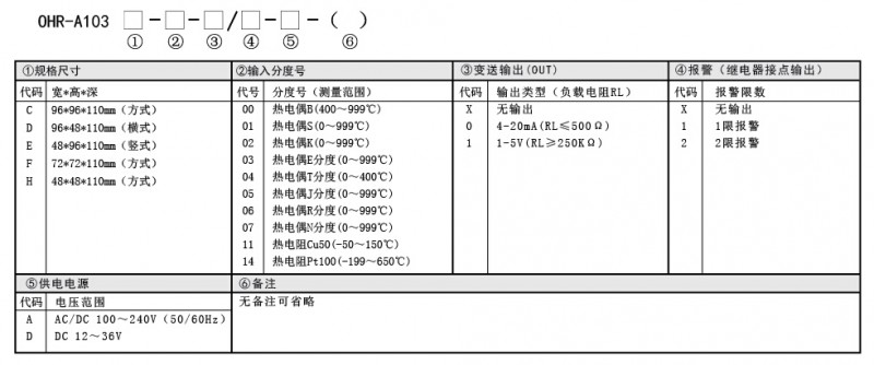 型号:OHR-A103C-00-X/X-A