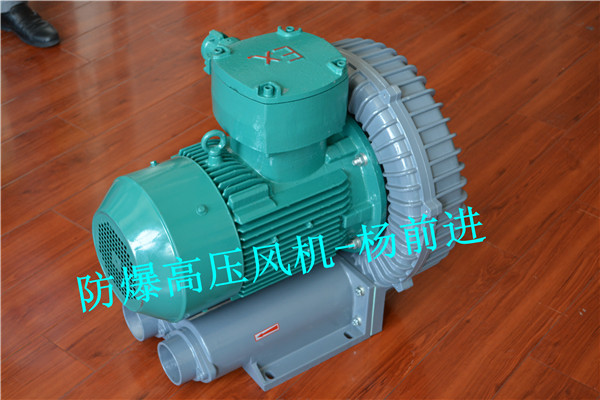 漩涡风机的叶轮由数十片叶片组成,它类似庞大的气轮机的叶轮。叶轮叶片中间的空气受到了离心力的作用,向叶轮的边缘运动,在那里空气进入泵体环行空腔,重新从叶片的起点以同样的方式再进行循环。叶轮旋转所产生的循环气流,以高的能量离开气泵以供使用。风机采用专用防爆电机,结构紧凑,体积小,重量轻,噪音低,送出气