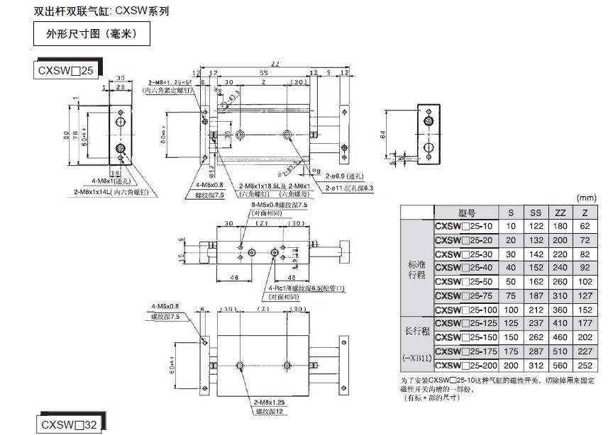 CXSW系列型号参数供查询,SMC上海办事处代理SMC气缸,FESTO气缸