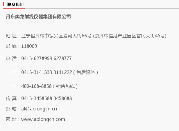丹东奥龙射线仪器集团有限公司坐落于辽宁省“五点一线”沿海经济带上的丹东临港产业园区;占地面积3万平方米,建筑面积1.7万平方米;拥有现代化生产环境和研发、生产、检测设备;是领先的射线仪器制造商和应用服务商。是无损检测行业的领导厂商美国GE的合作伙伴。
