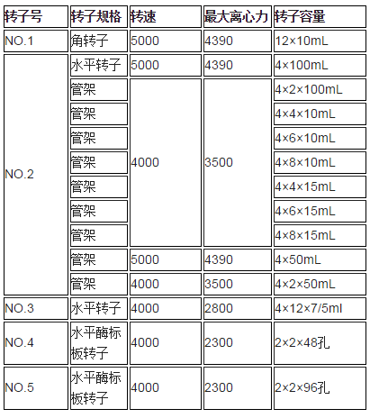 主机zui高转速: 5000rpm,可选转子规格: 5mL 10mL 50mL 100mL 7mL 15mL 48孔酶标板 96孔酶标板转子。厂家研发产品,广泛应用于临床医学、生物化学、基因工程、免疫学等领域,是各级医院、科研单位、高等院校用于离心分离的必备仪器