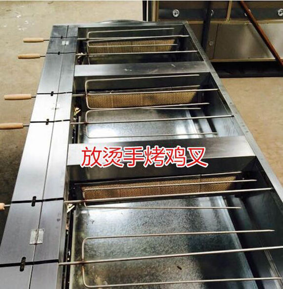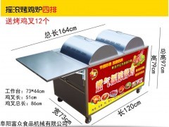 富众机械阐述四排燃气烤鸡炉六排木炭烤鸡炉六排六个开关,每个开关对应一块发热板,发热板在两边,烧烤无油烟,干净卫生,豪华气派,带盖子,无烟环保,节能保温,木手柄具有操作简单,移动方便、用途广泛等特点,视物一目了然,现烤现卖,视觉广告效果好,客户经常排队购买,摇摆烤鸡炉是加工烧烤致富的理想设备。每只三叉烤三只鸡或鸭,可以烤六排即18只鸡。机器用电瓶带动旋转,自带链条。烧烤面积大,方便移动,随处可经营操作。
