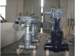Z960Y-P54100V、Z961Y-P54140V、Z961Y-P54170V 型 高温高压电动电站闸阀:电动、对接焊连接形式、明杆楔式刚性单闸板,阀座密封面材料为铬钼钒钢堆焊钴铬钨合金,工作压力10MPa~17MPa,阀体材料为铬钼钒钢的高温高压电站闸阀。