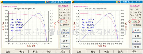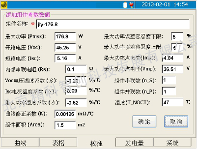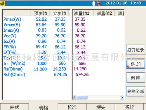 列表显示当前被测光伏阵列多组测试结果。测试结果已经折算至单个组件,并提供更多用户关心的参数,能直接与修正模型中的组件参数对比,明确反映被测组件的性能优劣。