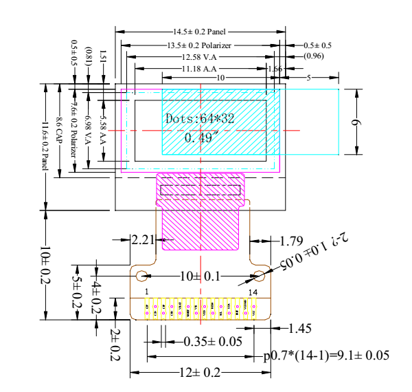 面板尺寸(宽x高x t):14.5×11.6×1.05mm3