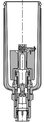 SMC AD37/AD47自动排水器内部结构如图所示。当水杯内无气压时,浮子靠自重落下,压块关闭上节流孔,活塞被弹簧顶起,活塞杆封住排水口。当水杯内的水位升高到一定位置,浮子浮力使压块与上节流孔脱离,大于0.15MPa的空气压力进入活塞上腔,推动活塞下移,冷凝水经浮子支架及排水支架上的孔,再经排水口从排水管排出。水位下降到一定位置,上节流孔又被关闭。活塞上腔气压通过下节流孔泄压,降到一定压力时,活塞又被弹簧顶起,封住排水口,这时水已基本排完。