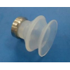SMC真空吸盘的工作原理是:先将真空吸盘通过接管与真空设备(如真空发生器等,图中没画出) 接通,然后与待提升物如玻璃、纸张等接触,起动真空设备抽吸,使吸盘内产生负气压,从而将待提升物吸牢,即可开始搬送待提升物。当待提升物搬送到目的地时,平稳地充气进真空吸盘内,使真空吸盘内由负气压变成零气压或稍为正的气压,真空吸盘就脱离待提升物,从而完成了提升搬送重物的任务。