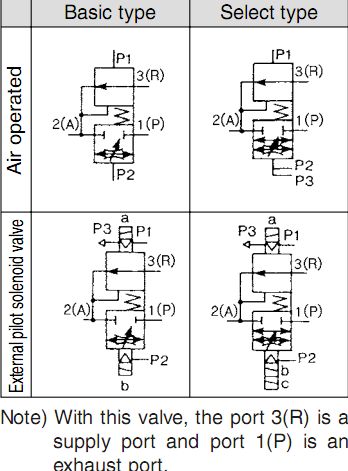 VEX5系列复合减压阀偶基本型和选择型。按操作方式有气控式和外部先导电磁式请参见下图:VEX5气动符号图。