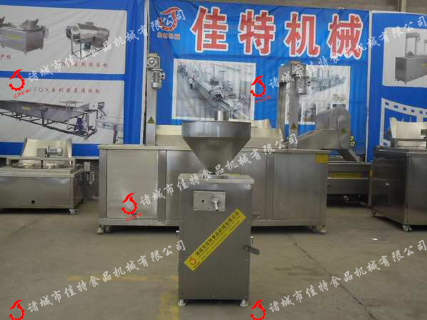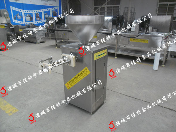 诸城市佳特食品机械有限公司是一家集科研、制造销售于一体的不锈钢食品机械的公司。公司技术力量雄厚,设备及检测手段齐全。结合市场需求,我公司生产的真空定量灌肠机,是一款非常实用的肠类灌装设备。该机集机械、真空、自动控制等多种技术于一体,具有单罐、连续直灌、冷灌装等模式,操作简单,分份,清洗方便。