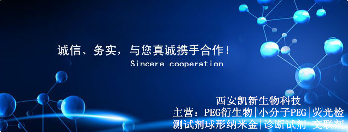 西安凯新生物科技有限公司是国内知名的PEG衍生试剂供应商,我公司可以提供各种高分子PEG衍生物,分子量从1000-20000不等,涉及甲氧基PEG|氨基PEG|羧基PEG|巯基PEG|叠氮PEG|八臂PEG|四臂PEG|活性酯PEG|叶酸PEG|生物素PEG|马来酰亚胺PEG|荧光素PEG|罗丹明PEG|丙烯酸酯PEG|磷脂PEG|琥珀酰亚胺PEG|炔基PEG|羟基PEG|叶酸PEG|硅烷PEG等基团,同时我公司新推出了单分散的小分子量PEG/PEO衍生物,PEG/PEO的重复单元从2个-24个不等,产品纯度高达98%以上。目前公司的PEG类产品 来源于十几个国际知名品牌和和国内的著名品牌PEG,我们跟国内知名实验室联合开发各种高附加值的PEG产品,还可以提供特殊PEG产品的定制服务。