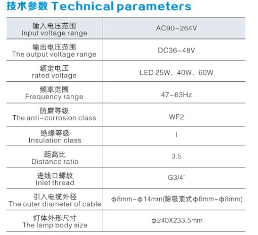 适用于石化装置、石油平台、加油站、油泵房、中转站等易燃易爆场所作固定照明。