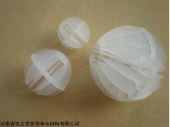 多面空心球由聚丙烯材质注射成形。由两个半球合成一个球形,每个半球由若干个半扇形叶片组成,上下叶片相互错开排列。多面空心球的中部沿整个周长有一道加固环,在环的上下各有十二片球瓣。上下球瓣互相交错,沿中心轴呈放射形布置。比表面积大。用于污水处理,发电厂脱CO2、脱硫及净水塔内填料。多面空心球是水处理设备中广泛采用的一种塔器填料。