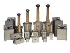把电源输入有过流自动脱扣及防止突发加压的零位连锁 装置的操作箱,经自耦调压器调节电压输入试验变压器初级绕组,根据电磁感应原理,在次级(高压)绕组按其与初级绕组匝数之比可获得同等倍数的电压幅值-工 频高压。此工频高压经高压硅堆整流及稳压电容器滤波可取得直流高压,其幅值是工频高压有效值的2倍。