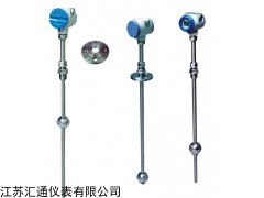 浮球液位计由浮球、插杆等组成。浮球液位计通过连接法兰安装于容器顶上,浮球根据排开液体体积相等等原理浮于液面,当容器的液位变化时浮球也随着上下移动,由于磁性作用,浮球液位计的干簧受磁性吸