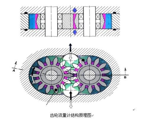流量计腔体内有一对互相啮合的齿轮作为转子,两个齿轮与腔体可以分别构成一个固定的体积,称为标准容积、流量就是通过计算一定时间内来流通过标准容积的个数来计量。