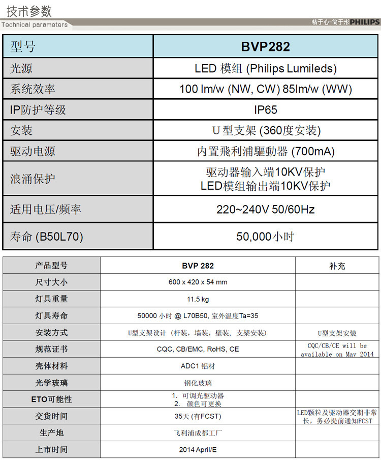 BVP283:21000lm/24500lm/28000lm/31500lm/33500lm