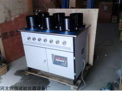 HP-4.0型自动加压混凝土抗渗仪是利用密封容器内压力处处相等的原理(水位差疏忽不计),以水泵对整个系统输压,并通过电接点压力表或压力控制器加压压力的大小来实现压力水由下向上渗透压装在试模中的试件,从而测定试件抗渗性能和计算其抗渗标号的仪器。HP-4.0型自动加压混凝土抗渗仪主要由箱体、工作台,由不锈钢面板制成,并安装有6个模座及36个M12螺栓,用于安装试模之用。