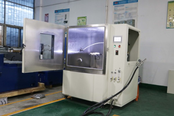 箱式淋雨检测设备可编程控制器分别对吹尘风机、粉尘振动和总的试验时间进行单独或集体的时间控制。试验时间大为99小时59分。箱内风速可调(通过变频器自动调节)