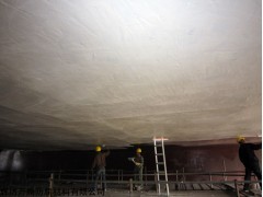 4、气温为30℃以上的恶劣条件下乙烯基酯树脂玻璃鳞片胶泥施工时,溶剂挥发很快,在无气喷涂时,油漆内的溶剂在喷嘴与被涂物面之间大量挥发而形成干喷。为避免干喷,应将喷枪尽可能接近物面,同时尽可能垂直地进行喷涂,如采取这一措施后仍然出现干喷,可加入不大于油漆自身重量的5%溶剂进行稀释予以解决。
