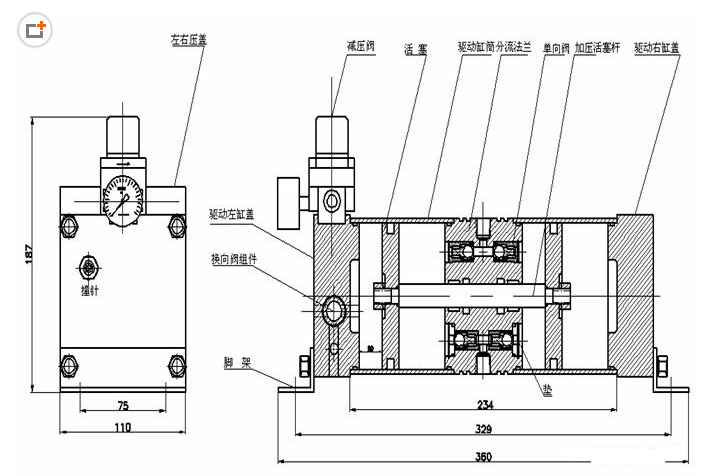 6.高:增压泵是一种柱塞泵,工作时增压泵迅速往复工作,随着输出压力的增高,泵的往复减慢直至停止,此时泵的压力恒定,能量消耗zui低,各部件停止运动。