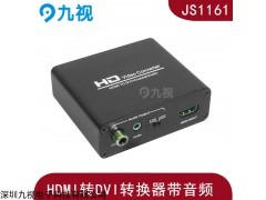 九视JS1161 HDMI转DVI高清视频转换器,HDMI数字信号转换为数字信号DVI-D和模拟音频或数字音频信号。HDMI信号连接PS3、XBOX360,蓝光DVD、高清机顶盒,CRT / LED显示屏等。你可以容易看高清视频的正常电视没有HDMI接口。1920x1080@60Hz.HDMI1.3版。
