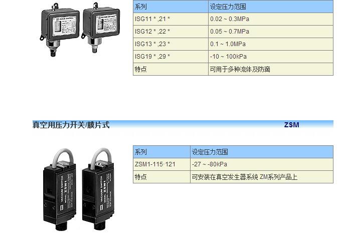 现货日本SMC机械式压力开关 ISG290-030W-X209