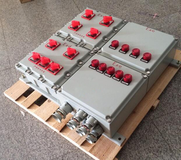 1、本产品为隔爆型结构,钢板焊接外壳,表面静电喷塑; 2、内装高分断小型断路器或塑壳断路器、交流真空接触器、电动机保护器、电压表等元件,具有过载、短路、欠压、缺相、漏电等保护功能。 3、进出线均采用无火花型防爆插接装置,并有明确的设备位号指示板,指示板采用304不锈钢板折弯成形,抛光处理,外形美观大方实用。 4、隔爆面采用特殊的加工手段,嵌入耐油老化硅胶“0”形密封圈,使箱体防护等级达IP65,以解决传统隔爆箱户外使用进雨水的难题,取缔传统采用防雨罩防雨复杂而无效的措施。 5、所有紧固件均采用抗强腐蚀的304不锈钢紧固件。 6、具体功能及外形可根据用户要求特制。