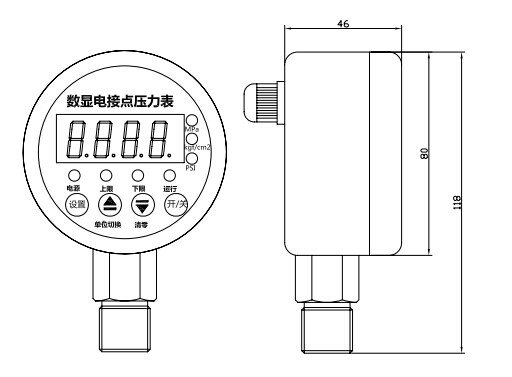 同时该款数显电接点压力表具有多种压力单位切换、一键清零的功能。