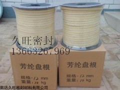 芳纶盘根由芳纶纤维浸渍聚四氟乳液和润滑剂处理编织而成。有较好的耐化学性,高回弹,低冷流。具有的高转速、高模数的性质(被称为人造金属线)它的强度是金属丝的三倍,重量比金属丝轻五倍。所以,与其它类型的盘根比较,它能抵抗颗粒结晶介质和更高的温度既可单独使用也可与其它盘根组合。在泵系统上是很好的石棉替代产品。