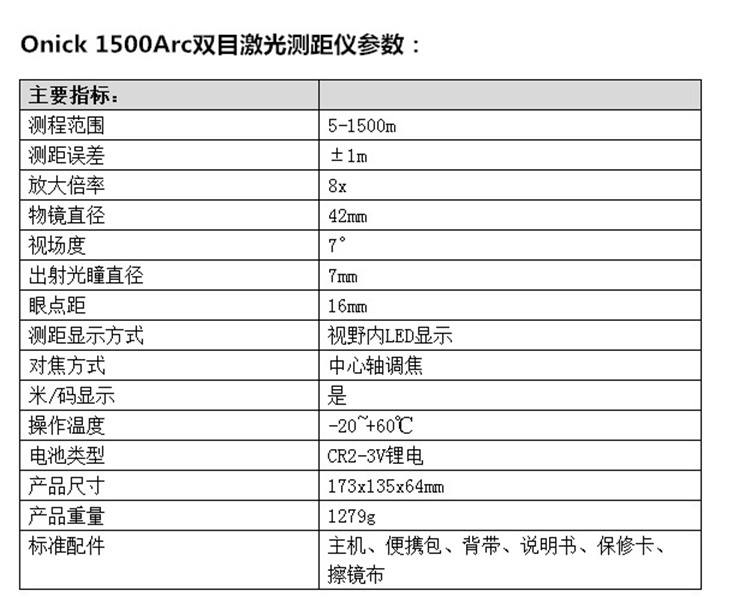 福清测距望远镜  Onick8X42 1200米 测距望远镜