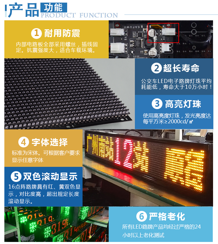 2、采用专用软件控制技术,可将公交车线路与起止站呈现在车头、车尾,供乘客从不同方位识别。