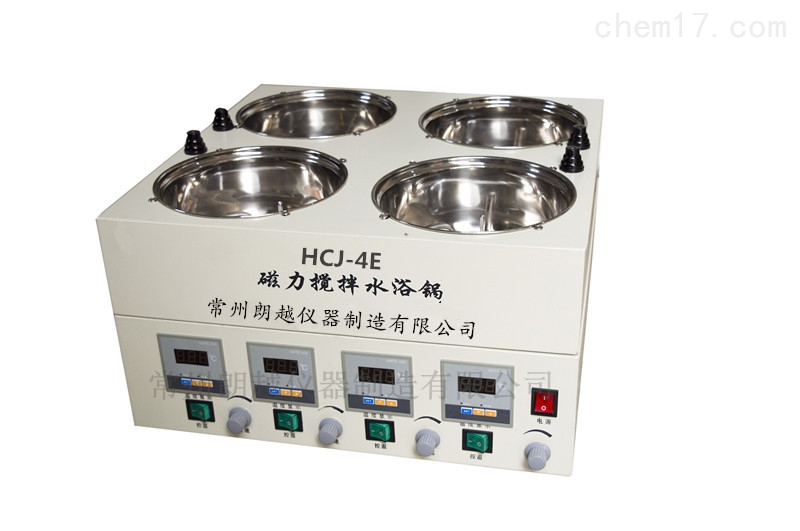 HCJ-4E恒温水浴磁力加热搅拌器价格。双列4头搅拌可单独控制,采用程控集成稳压增力线路,转速平稳、不受电压波动影响。微电脑控温LED显示、精度±0.1℃,4孔异温,每个锅子可根据实验要求设定不同的温度并且恒温。