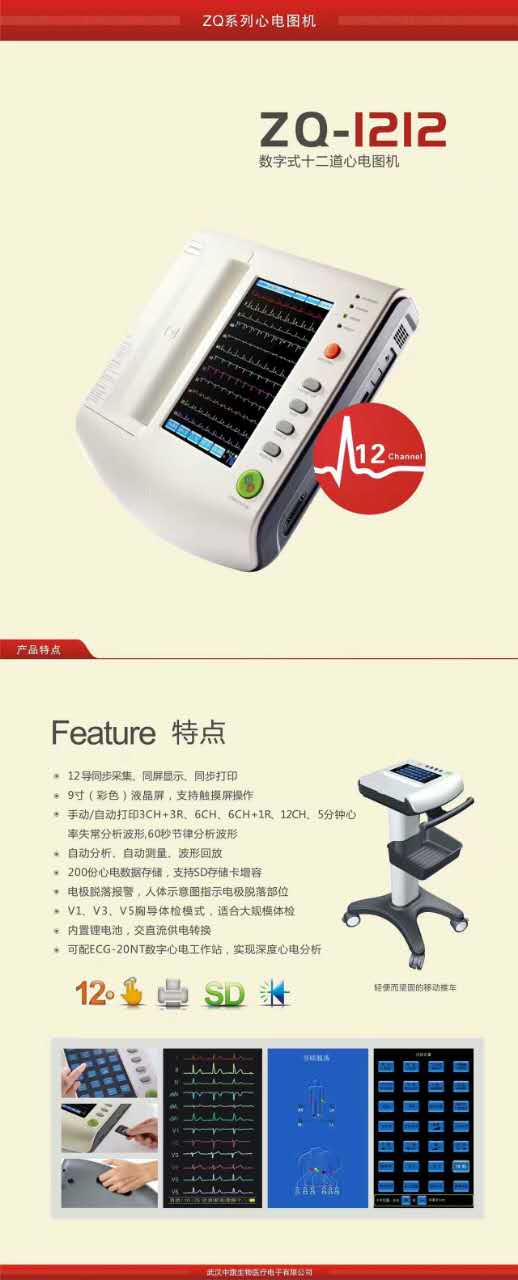 ZQ-1203武汉中旗心电图仪器多少钱欢迎来电咨询,中旗心电图机是知名品牌三道心电图机。中旗心电图机市场占有率高,质量有保证,售后有保障。中旗三道心电图机有电脱落指示图,显示电连接情况,大方便操作。