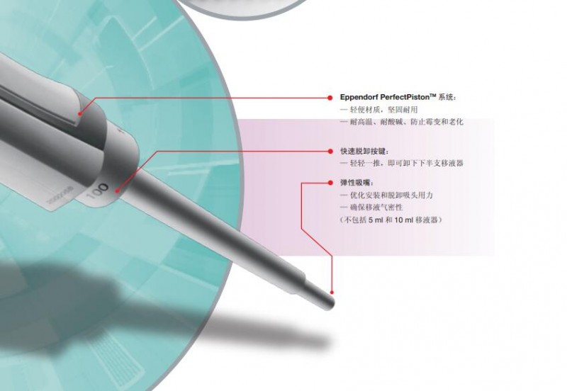 2、Eppendorf PerfectPiston®: 超轻的耐化学腐蚀活塞